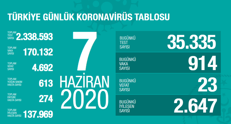 Türkiye 9 haziran koronavirüs tablosu.